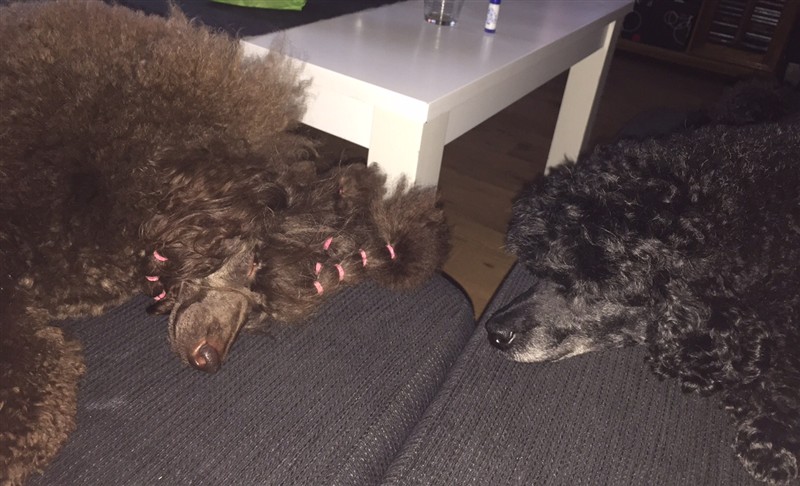 Nu har jag både Greta & Asta som trängs och vill vara näääära mig i soffan.... Lilo ligger som en säl utefter höger ben , tur vi har en stor & bred soffa!!