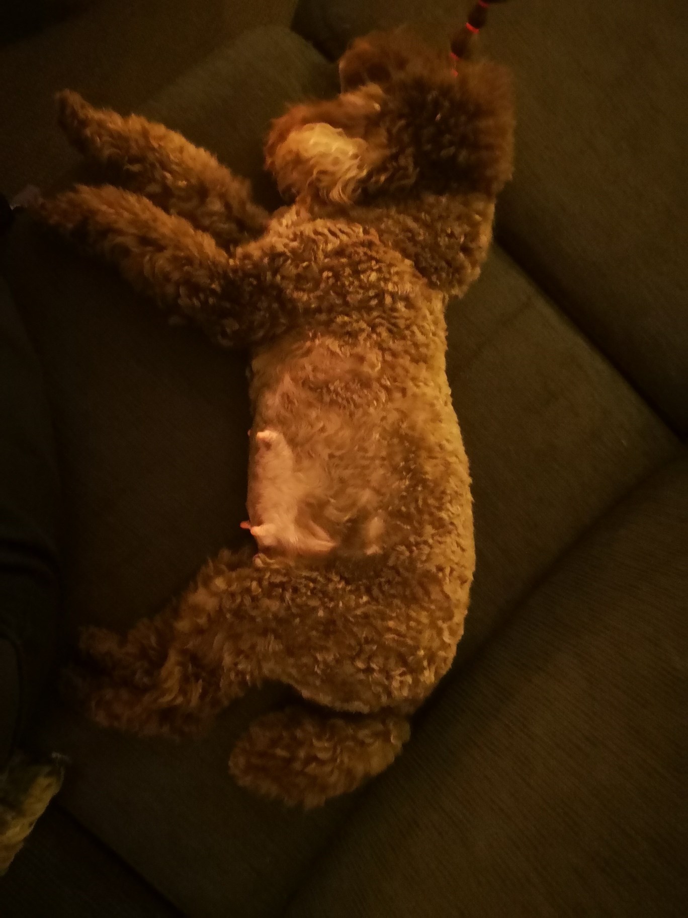 Ebba är en egensinnig hund som gärna slänger sig på rygg i min famn eller på mina ben.