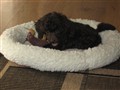 Bizze (K. Brown Bourbon) slappar i sin egna sovkorg efter att ha gått på upptäcktsfärd i sitt nya hem.